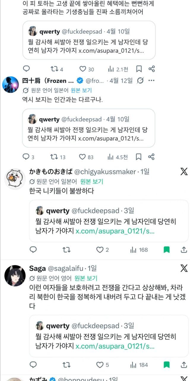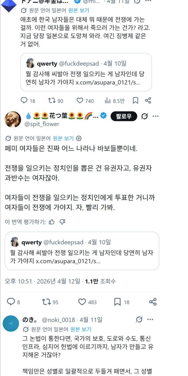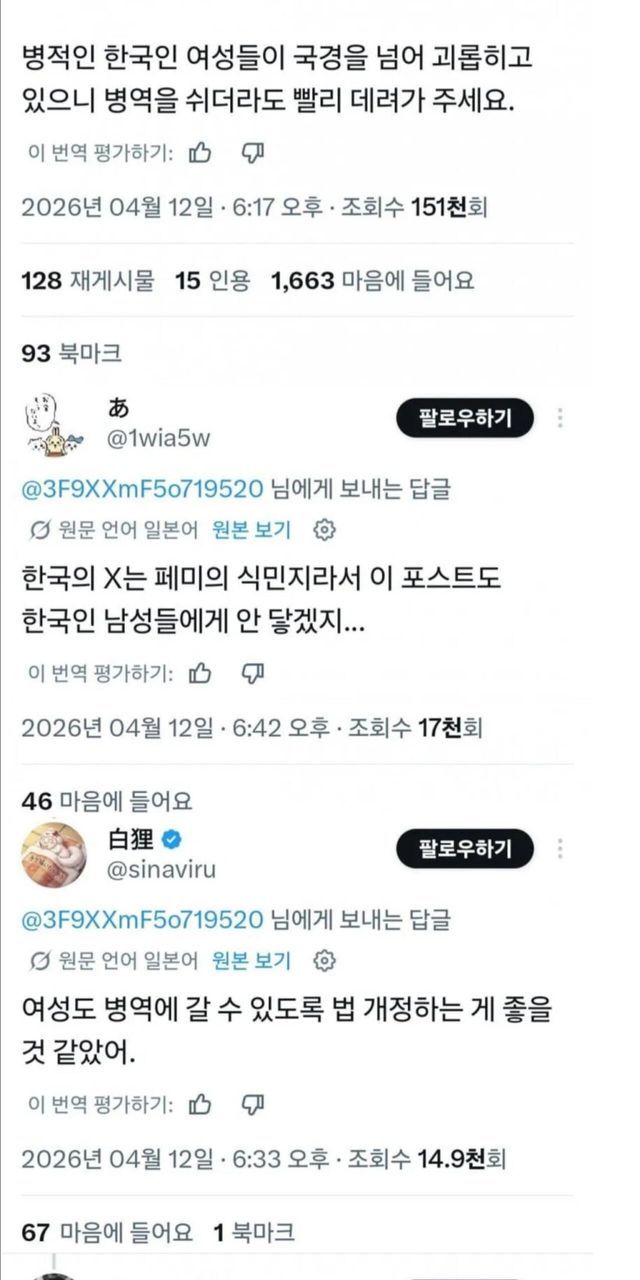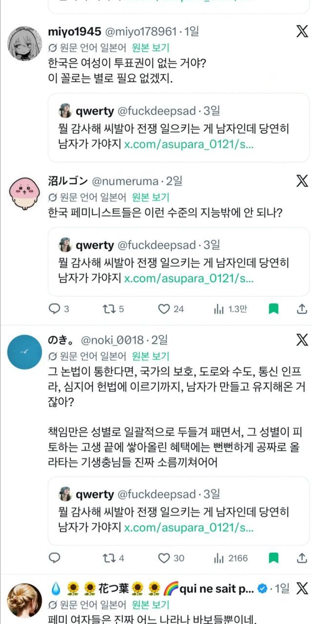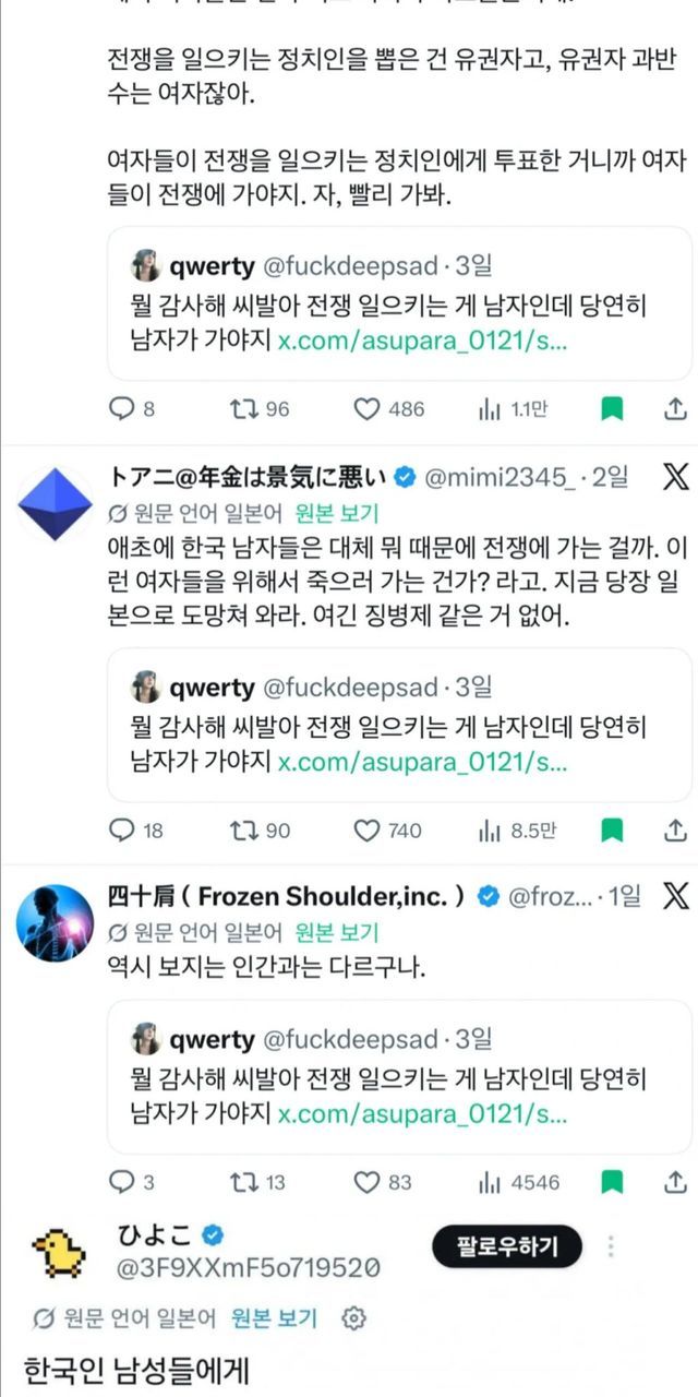 트위터에서 일본남녀한테 개처맞고 있다는 한국여자들