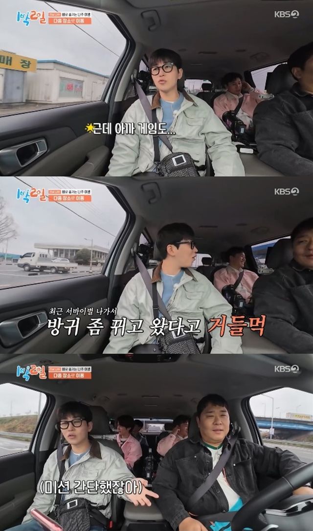 딘딘은 다른 장소로 이동하는 중에도 "서바이벌 하다가 '1박 2일' 하려니까 힘들다"고 말했다.