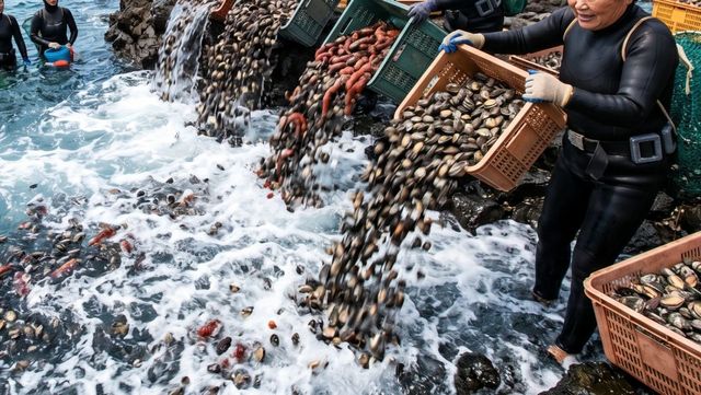 전복, 오분자기, 홍해삼 등을 대규모로 방류하는 모습. 기사 이해를 돕기 위해 AI가 생성한 자료사진. (실제와 직접적인 연관은 없음을 알립니다.)