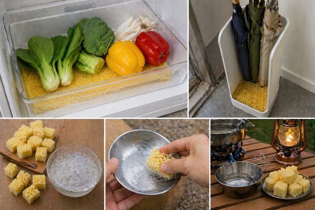 캠핑이나 여행을 떠날 때도 도움이 된다. 낡은 수세미를 작은 크기로 자르고 주방 세제를 미리 듬뿍 묻혀 바짝 건조시킨다. 야외에서 설거지가 필요할 때 물만 살짝 묻히면 즉석에서 거품이 발생하므로 무거운 세제 통을 별도로 챙길 필요가 없다. 사용 후에는 현장에서 바로 폐기할 수 있어 짐을 줄이는 데 용이하다.