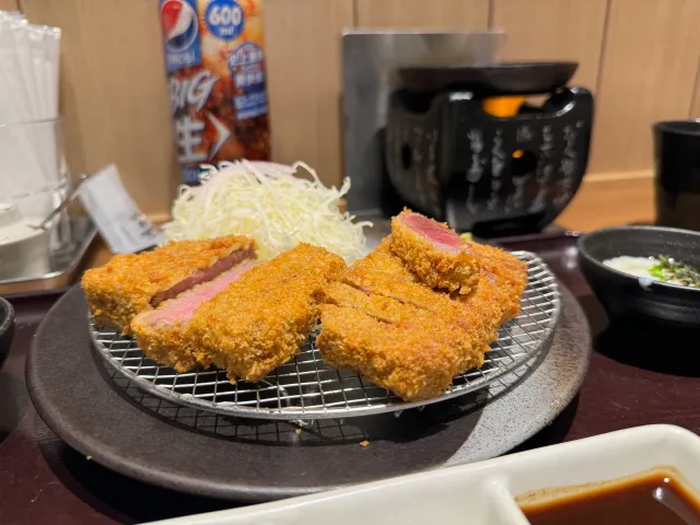 3. 맛 애매함 - 그냥 튀김옷 입은 소고기를 구워먹는 맛. 같은 돈으로 야끼니꾸집에 가면 더 맛있고 가성비도 좋음.