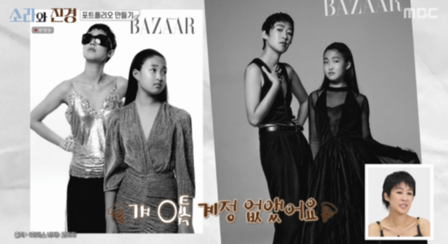 두 사람은 지난 화보 작업물들을 보던 중 홍진경과 딸 라엘이가 함께한 모녀 화보를 발견했다.