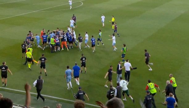 안드라다의 주먹질은 양 팀 선수들의 난투극으로 번졌다.