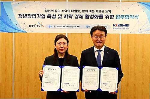 지역경제 활력과 청년 사업가 양성을 위해 KT&G와 중소벤처기업진흥공단이 협력 체계를 구축했다. 연합뉴스에 따르면 지난 24일 서울 성수동 KT&G 상상플래닛에서 양 기관이 업무협약을 공식 체결했으며, 심영아 KT&G ESG경영실장과 이창섭 중진공 기획관리이사를 포함한 8명의 관계자가 자리를 함께했다.