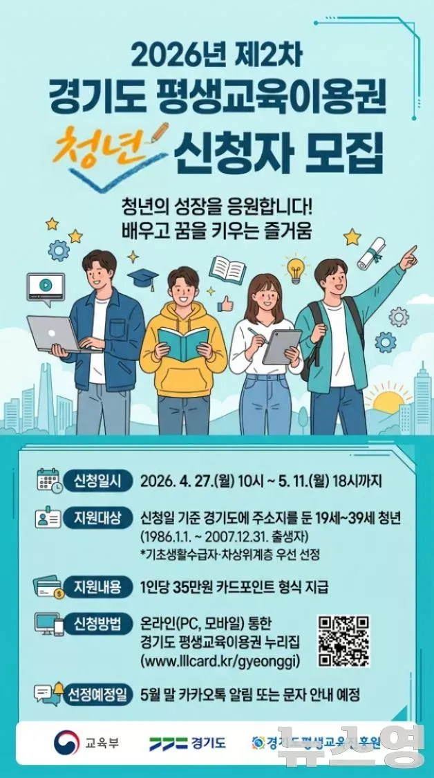 시는 '2026년 제2차 경기도 평생교육 이용권' 신청 접수를 27일부터 시작한다고 밝혔다.