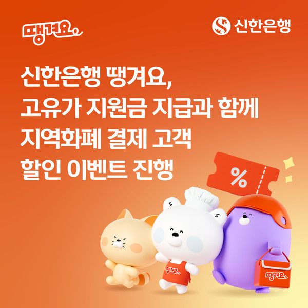 ◇신한은행 배달앱 '땡겨요', 고유가 피해지원금 지역화폐 결제 시 추가 할인