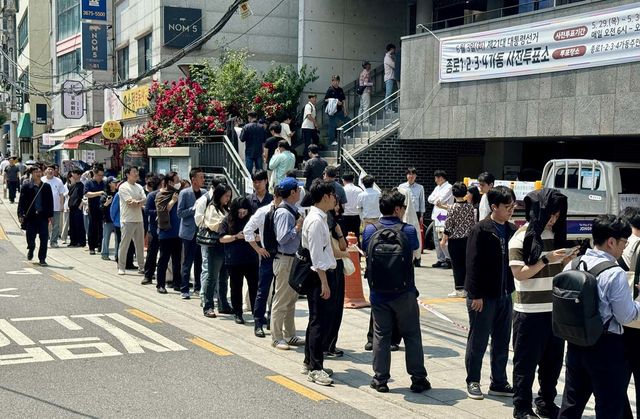 제21대 대통령선거 사전투표 첫 날인 2025년 5월 29일 서울 종로구 종로1·2·3·4가동 주민센터 투표소에 마련된 투표소에서 직장인들이 점심시간을 이용해 투표를 위해 길게 줄을 늘어서 있다. 사진 속 유권자들은 글 내용과 관련이 없다. / 뉴스1