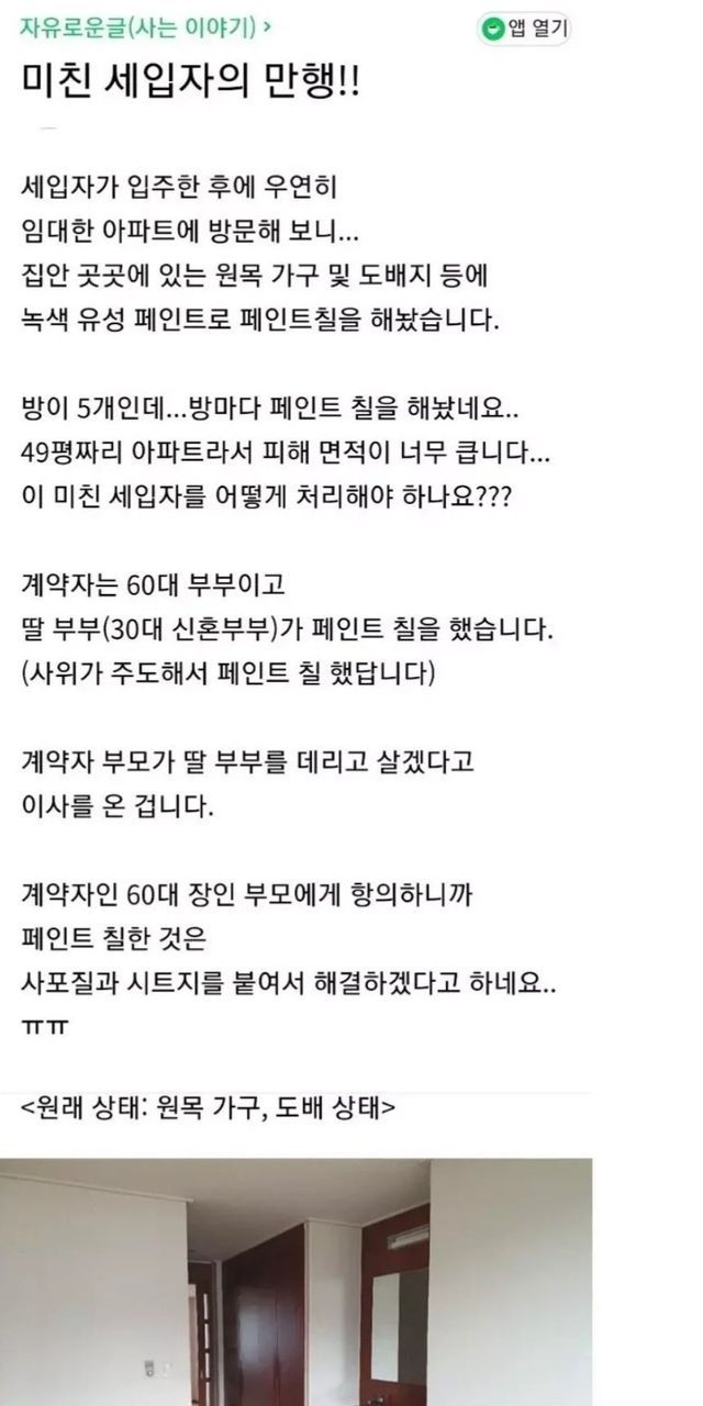 49평 아파트 내부에 페인트칠을 한 미친 세입자