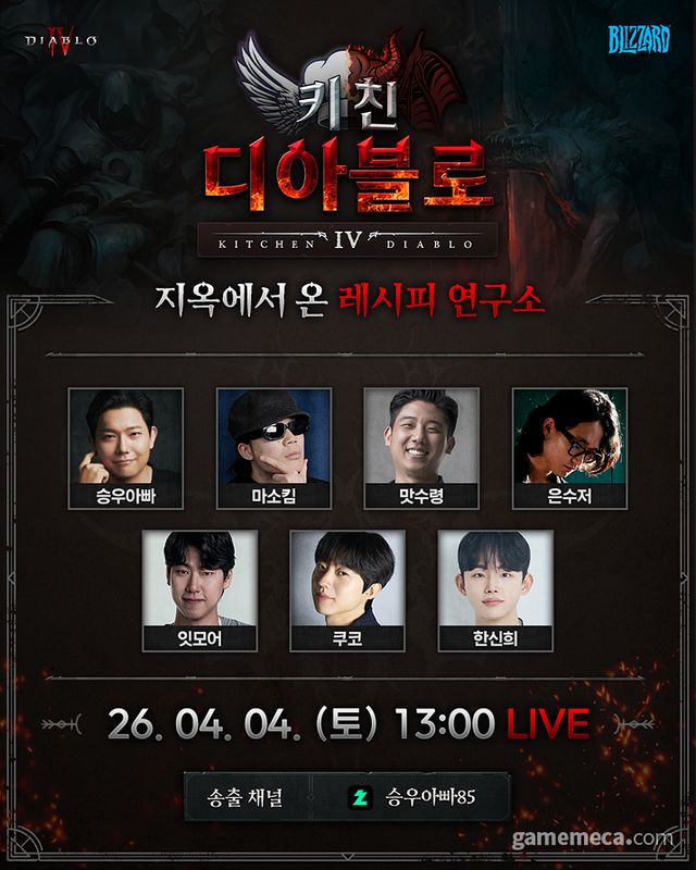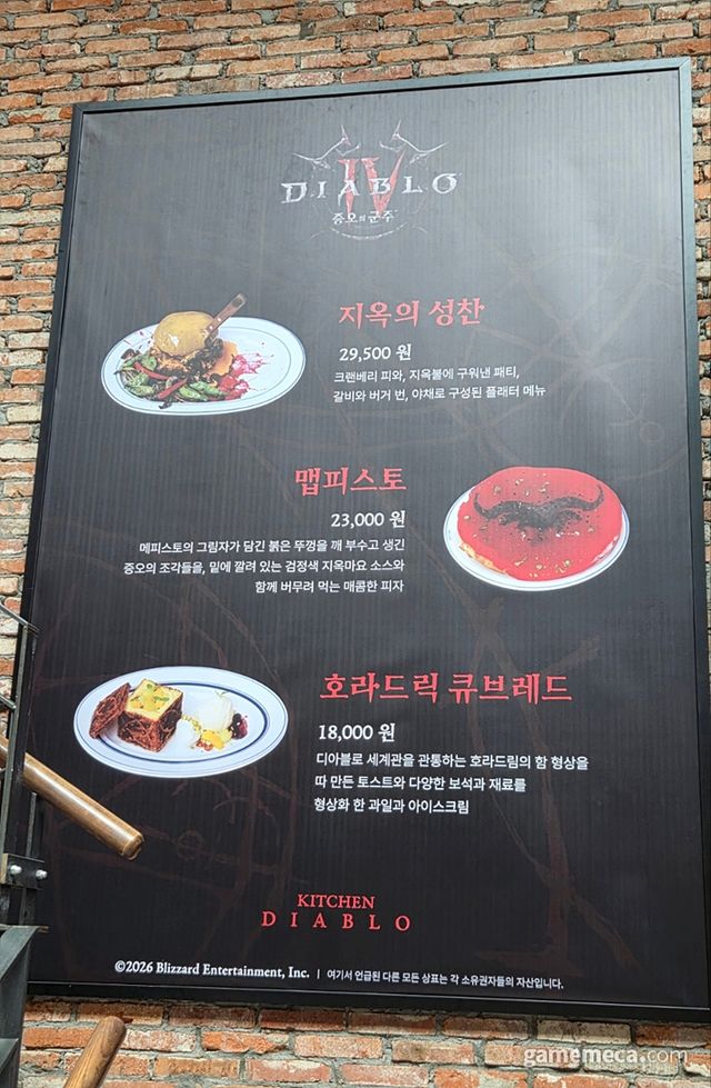 빽다방, 역전우동 등 다양한 음식 컬래버레이션을 이어온 디아블로 4가 이번에도 새로운 이벤트를 전개한다. ‘키친 디아블로’라는 이름의 이번 이벤트는 크리에이터 ‘승우아빠’가 참여해, 28일 ‘증오의 군주’ 확장팩 출시에 맞춰 디아블로 테마를 녹인 다양한 음식을 선보인다. 이에 이벤트가 열리는 데블스도어 센트럴시티점을 직접 방문해, 디아블로 분위기로 꾸며진 현장과 음식을 직접 만나봤다.