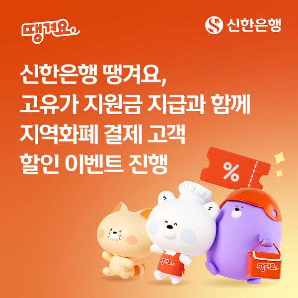 신한은행이 운영하는 배달앱 땡겨요가 고유가 피해지원금 지급 일정에 맞춰 지역화폐 결제 고객 대상 할인 이벤트를 진행한다.