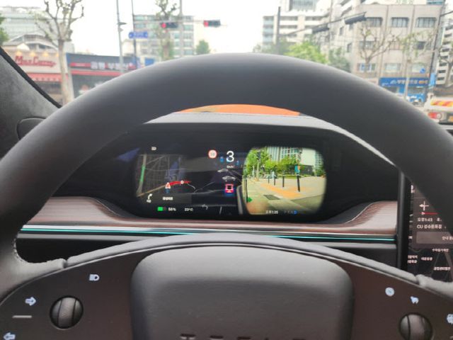 인포테인먼트 환경 역시 압도적이었다. 운전대만 있고 기어나 방향지시등 레버가 없었다. 가로형으로 배치된 17인치 ‘시네마틱 디스플레이’를 통해 모든 차량 기능 컨트롤이 가능했으며, 고해상도 지도를 시원하게 펼쳐 보였다. 운전대 앞 12인치 계기판(클러스터)은 주변 차량, 오토바이, 보행자 등 모든 객체를 실시간으로 정교하게 시각화했다. 차량이 주변 환경을 완벽히 이해하고 있다는 시각적 정보 덕에 심리적 불안을 확신으로 바꿔놓기에 충분했다.