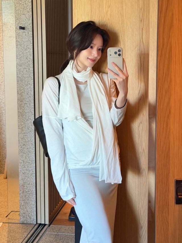 공개된 사진 속 김지영은 화이트 톤 의상을 입은 채 거울 셀카를 남기며 여유로운 분위기를 자아냈다. 특히 임신으로 한층 도드라진 D라인이 눈길을 끌었다.
