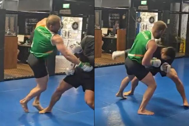 (엑스포츠뉴스 윤준석 기자) 전 UFC 웰터급 파이터 김동현이 아일랜드 현지에서 '전설' 코너 맥그리거와 훈련하는 도중 그에게 강력한 바디샷에 고통스러워하는 장면이 공개되며 팬들의 관심이 집중되고 있다.