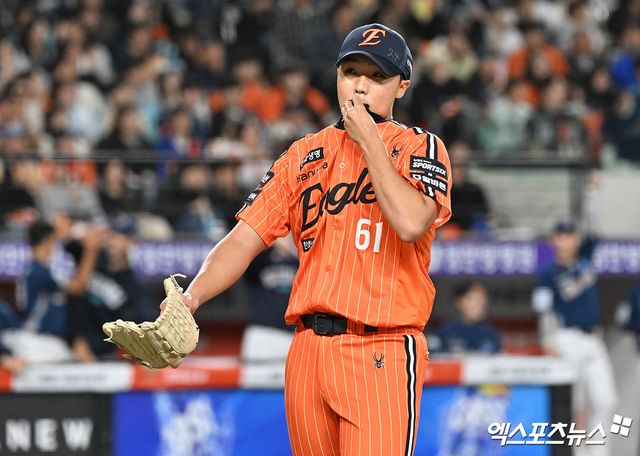김서현은 지난 14일 대전 삼성 라이온즈전에서 5-1로 앞선 8회 2사 뒤 등판했다. 하지만, 김서현은 1이닝 1피안타 7사사구 3실점이라는 충격적인 성적으로 팀 역전패를 바라봐야 했다.
