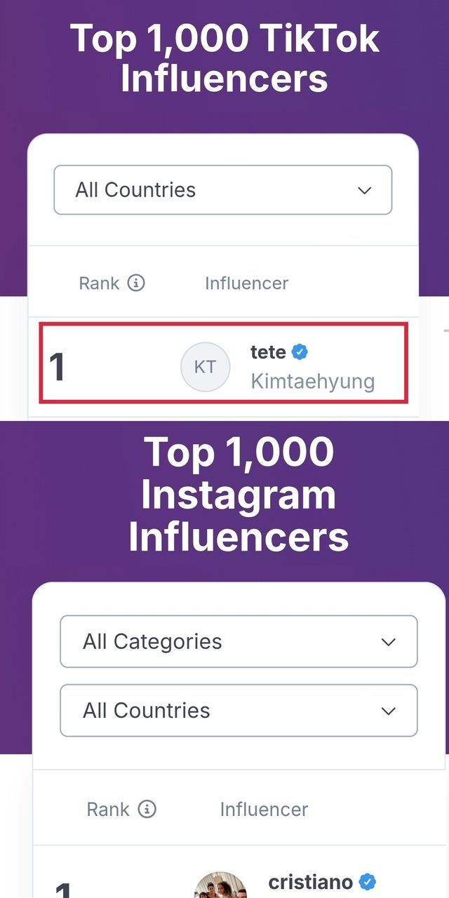 미국 소셜미디어 분석업체 하이프오디터 집계에 따르면 뷔는 ‘전 세계 가장 영향력 있는 인플루언서 톱 1000’에서 2위를 차지했다. 틱톡에서는 같은 기준 1위에 오르며 독보적인 영향력을 보여줬다.