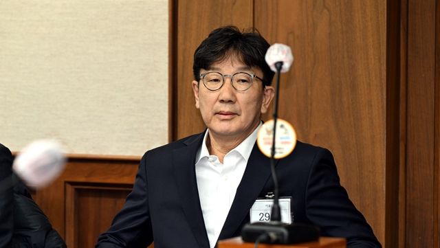 권성동 국민의힘 의원이 지난해 11월 서울 서초동 서울중앙지법에서 통일교로부터 불법 정치자금을 수수한 혐의 사건 1차 공판에 출석해 자리에 앉아 있다. / 뉴스
