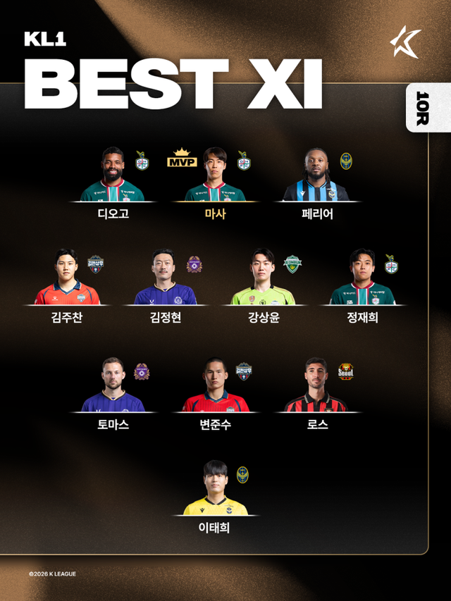 마사의 활약에 힘입은 대전은 10라운드 베스트 팀으로도 꼽혔다. 울산 원정서 시즌 첫 3골 차 승리를 거둔 대전은 루빅손, 정재희, 디오고, 마사의 릴레이 득점으로 웃었다. 울산은 후반 44분 이동경의 만회 골로 무득점 패배를 면했다.