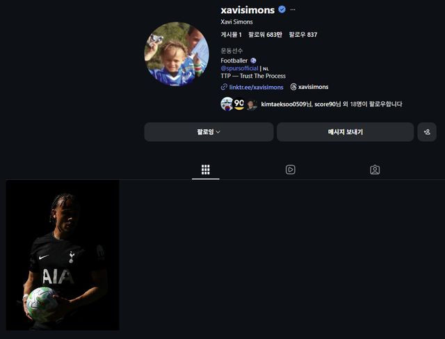 (엑스포츠뉴스 김정현 기자) 초대형 부상으로 실망한 토트넘 홋스퍼 7번 사비 시몬스가 자신의 인스타그램에 모든 게시물을 삭제해버렸다.