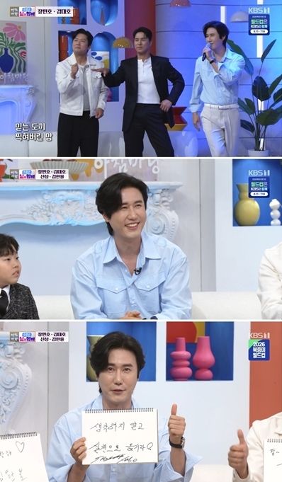 28일 방송된 KBS1 ‘아침마당’의 ‘소문난 님과 함께’ 코너에는 가수 장민호와 아나운서 김대호가 ‘호호 형제’로 출연한 가운데, 신성이 방송 도중 ‘몰래 온 손님’으로 깜짝 등장해 두 사람을 향한 든든한 지원 사격에 나섰다.