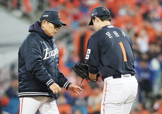 한화 이글스 양상문 투수코치(왼쪽)와 김경문 감독 모습. 기사 이해를 돕기 위한 자료 사진. 한화 이글스 구단은 28일 양상문 투수코치가 김경문 감독과의 면담에서 건강상의 사유로 엔트리 말소를 요청했다고 전했다. 이에 따라 양상문 투수코치는 건강상의 이유로 당분간 쉰다. 대신 한화 이글스 퓨처스(2군)팀에 있던 박승민 투수 코디네이터가 1군에 합류해 양상문 투수코치를 대신해 28일 SSG 랜더스와의 경기부터 투수코치로 활동할 계획이라고 한화 이글스는 설명했다. 한화 이글스 구단은 당분간 양상문 투수코치가 팀에서 보직을 맡지 않고 휴식할 것이라고 언론에 전했다. / 뉴스1
