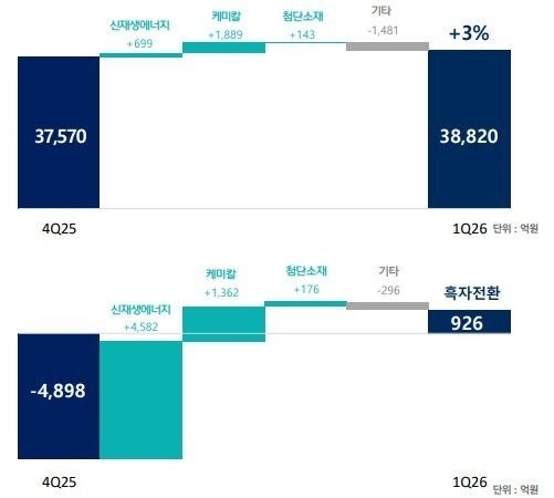 케미칼 부문 매출액은 1조3210억원으로 지난해 동기 대비 24.8% 증가했고, 영업이익은 341억원으로 2년 반 만에 흑자 전환했다. 중동 분쟁 등 주요 제품의 수급 변화와 가격 상승 등의 요인이 반영됐음에도 실적이 개선된 건 구조적인 개선 성과 때문이다.