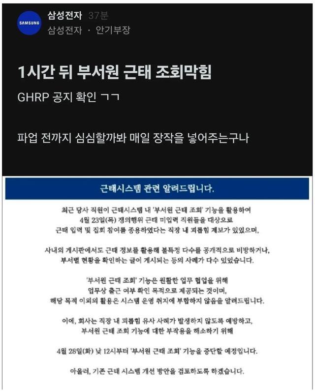 눈치보지 않고 출근할 수 있도록 부서근태조회를 블락함