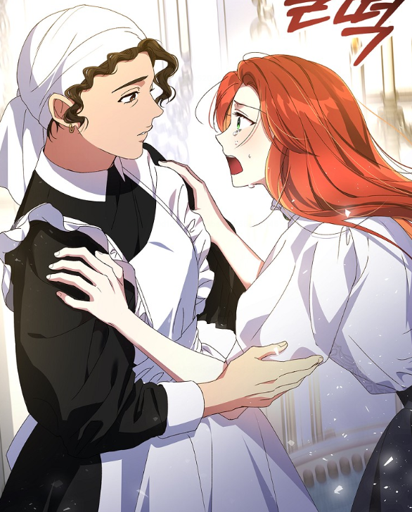 사용인들이 달려 나와 그녀를 부축합니다.