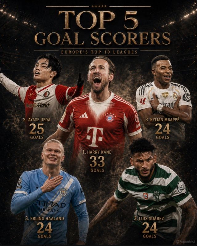 축구전문매체 '풋테스트'는 28일(한국시간) 사회관계망서비스(SNS) 계정을 통해 '2025-2026시즌 유럽 상위 10개 리그 득점 TOP 5'을 공개했다.