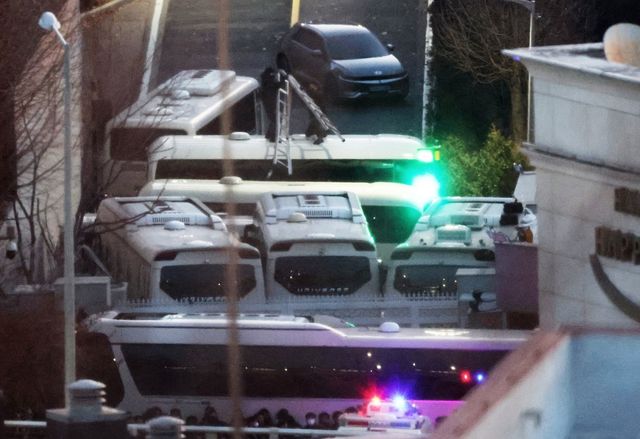 지난해 1월 고위공직자범죄수사처와 경찰로 구성된 공조수사본부가 윤석열 대통령에 대한 2차 체포영장 집행에 나선 공수처 관계자들이 사다리를 이용해 차벽을 넘고 있다. / 뉴스1