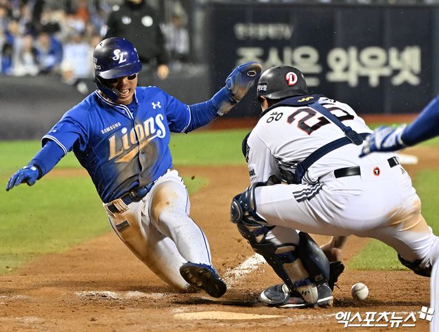 삼성의 선취점도 김성윤부터 시작됐다. 김성윤은 4회말 선두타자로 나와 호투하던 두산 에이스 곽빈에게 볼넷을 골라내며 출루, 후속 타자 최형우의 안타 때 3루까지 진루했다. 이어 르윈 디아즈의 우익수 뜬공 때 태그업 후 홈 플레이트를 밟아 삼성에 1-0 리드를 안겼다.
