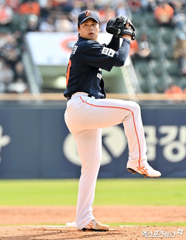 왕옌청은 28일 대전 한화생명 볼파크에서 열린 2026 신한 SOL KBO리그 SSG 랜더스와의 정규시즌 3차전에 선발 등판해 5⅓이닝 5피안타(1피홈런) 3사사구 2탈삼진 2실점을 기록했다. 시즌 평균자책점은 2.28에서 2.45로 소폭 상승했다.