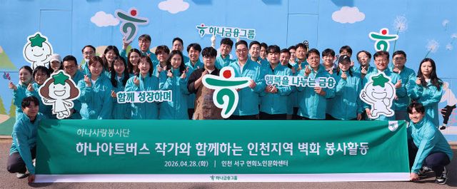 하나금융그룹은 발달장애인 미술공모전 ‘하나 아트버스’ 수상자와 함께 지난 28일 인천 서구 연희노인문화센터에서 벽화조성 봉사활동을 실시했다고 29일 밝혔다.