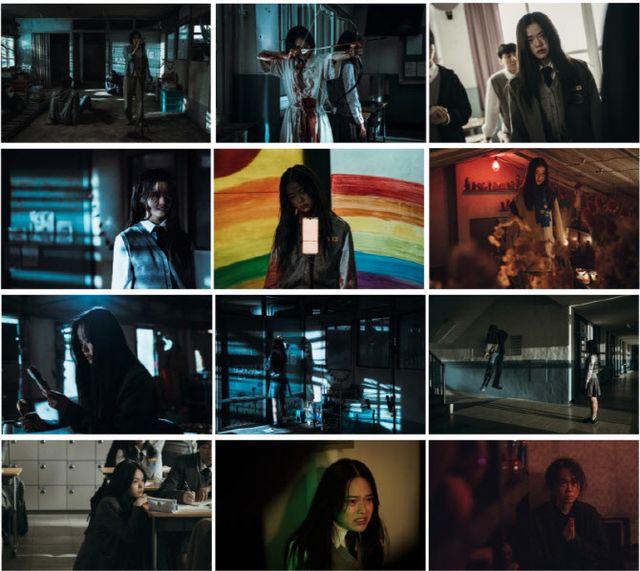 추가로 공개된 미공개 스틸은 기리고에 깃든 저주를 해결하기 위해 사투를 벌이는 인물들의 모습부터, 그 저주 뒤에 숨겨져 있던 서사까지 모두 담겨 눈길을 끈다. 겁에 질린 표정을 하고 있음에도 불구하고 조심스레 휴대폰에 손을 가져다 대고 있는 세아(전소영)의 모습과, 피를 흘리면서도 손에 활을 꼭 쥔 채 어딘가를 겨냥하고 있는 햇살(전소니)의 모습에서는 기리고의 저주를 풀기 위해 앞뒤 가리지 않고 뛰어드는 용기와 강인함을 엿볼 수 있다. 한때 떼려야 뗄 수 없는 가까운 친구였지만, 각자의 원한을 품은 채 기리고의 저주와 엮이게 되는 혜령(김시아)과 시원(최주은)의 서사를 담은 스틸들은 충격적인 반전으로 모두를 놀라게 만들었던 이들의 이야기를 떠오르게 만든다. 시원의 엄마이자 무당인 업순(이상희)의 모습은 보는 것만으로도 서늘한 분위기를 자아내며, 극에 또 다른 서사를 더한 그의 강렬한 존재감을 상기시킨다.
