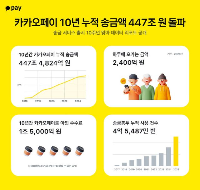카카오페이 관계자는 “지난 10년은 송금의 번거로움을 해소하고 사용자들의 일상을 혁신하기 위해 달려온 시간이었다”며 “앞으로도 사용자들이 더욱 ‘금융을 가깝게’ 느끼며 마음과 가치를 나누는 경험을 지속하도록 서비스를 고도화해 나가겠다”고 말했다.