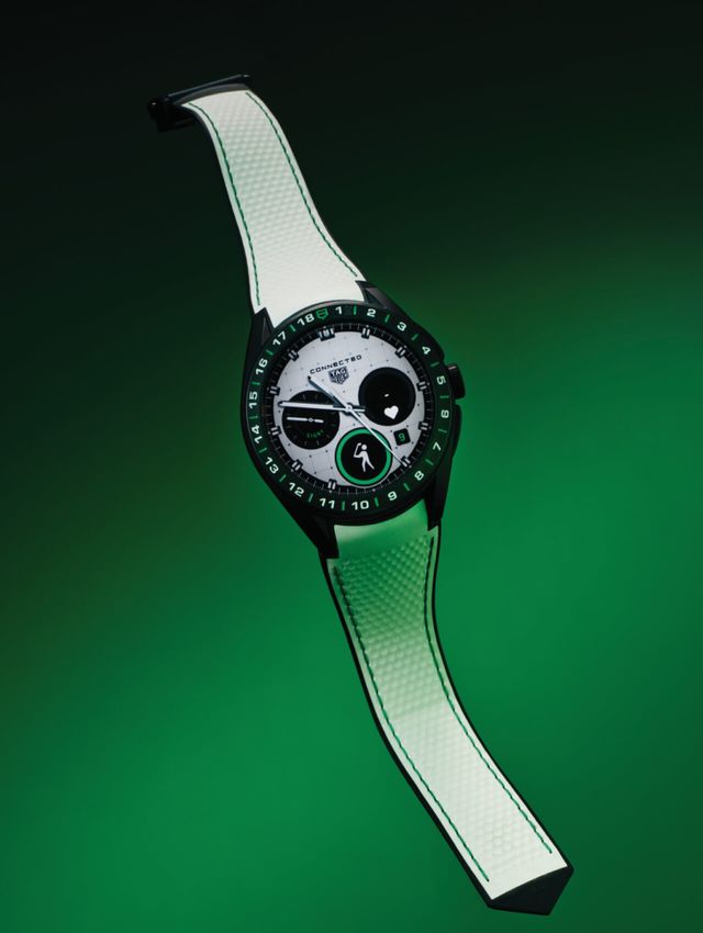높은 정확도의 스포츠 기능에 스타일리시한 감각을 더한 타임피스 ‘커넥티드 칼리버 E5(Connected Calibre E5) 45mm 골프 에디션’. 자동 스코어링은 물론, 전체 홀 레이아웃의 자동 확대·축소 기능과 최적의 플레이를 위한 정교한 게임 통계 정보를 실시간으로 제공한다. 18번 홀까지 번호가 새겨진 인그레이빙 베젤과 골프공 딤플에서 착안한 스트랩 디자인은 기능과 미학적 완결성을 동시에 끌어올린다.