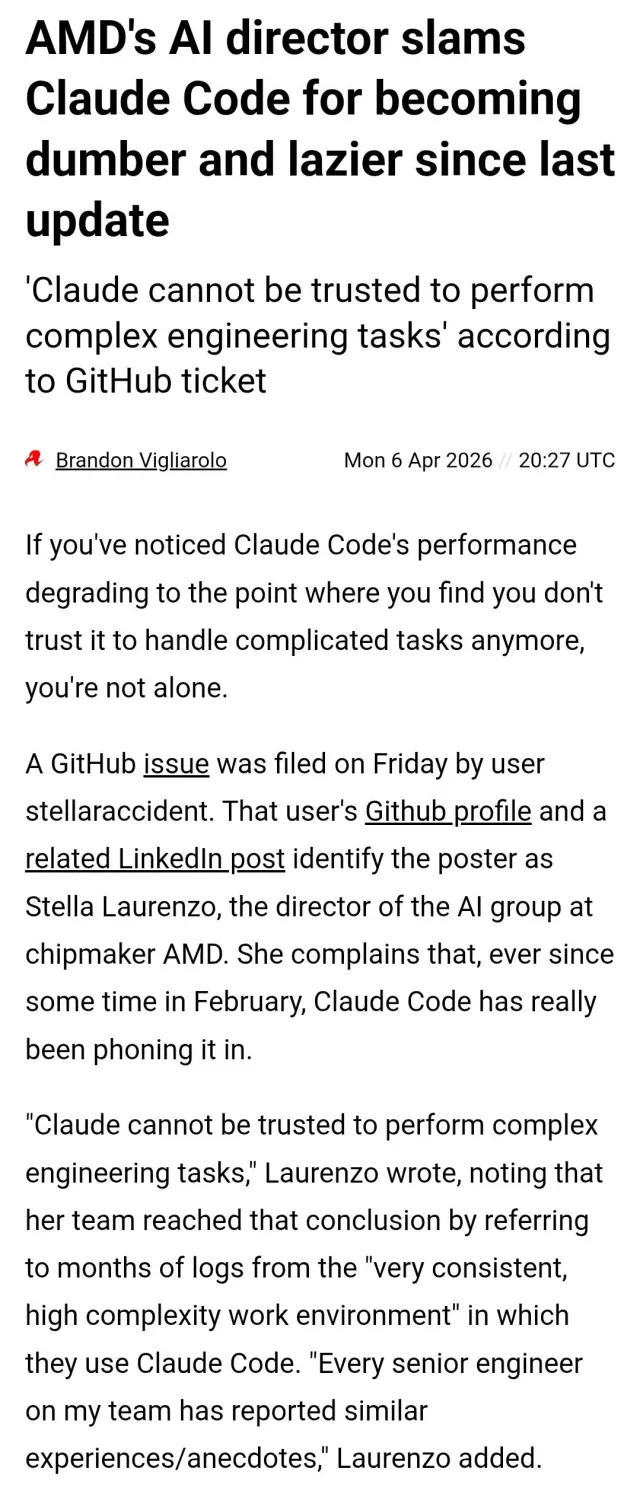 월초 AMD Ai 책임자가 더 이상 복잡한 작업 수행하는데 적합하지 않다면서 가루가 되도록 깠던 클로드 Ai