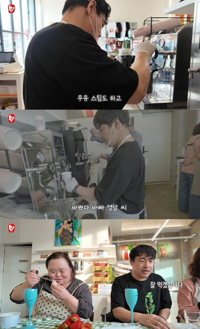 공개된 영상에서는 다운증후군 작가 서은혜 남편 조영남 씨의 카페 근무 일과가 담겼다.