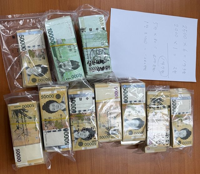 투자리딩방 사기 피해자에게 환수된 1억8400여 만원 상당의 현금. 제주경찰청 제공