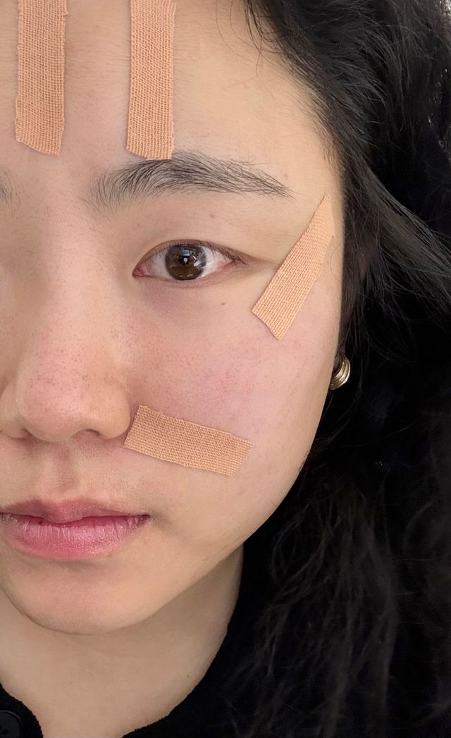 잠에서 깨어났을 때 유독 주름이 깊어 보이는 날이 있다. 보통 옆으로 누워 자는 습관이 있으면 얼굴 한쪽으로 압력이 쏠리면서 눈가나 팔자 주름이 더 도드라지기 쉽기 때문이다. 나도 모르게 이마를 찡그리거나 턱과 목이 눌리는 경우도 마찬가지다. 문제는 수면 중 특정 방향으로 피부가 눌리고 접히는 상태가 반복되면 단순한 자국을 넘어 아예 '수면 주름'으로 자리 잡을 수 있다는 것. 최근 SNS에서 페이스 테이핑이 주목받는 이유도 바로 여기에 있다. 테이프로 피부를 고정해 밤사이 가해지는 압력을 줄이고 주름이 생기는 경로를 물리적으로 차단하겠다는 원리다.
