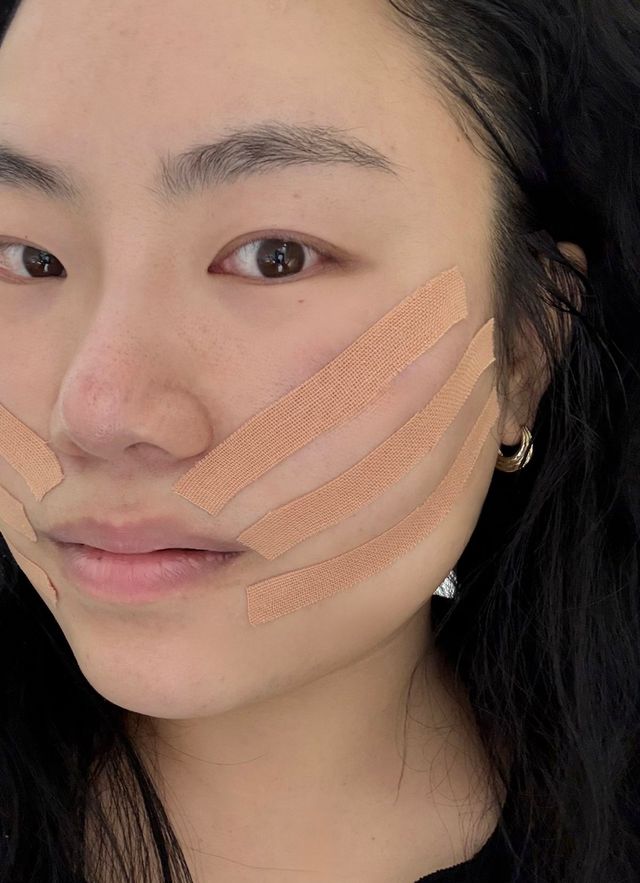 페이스 테이핑은 운동선수들이 사용하는 키네시올로지 테이핑의 원리를 활용했다. 근육과 관절을 지지하는 탄성 테이프가 피부를 고정하고 미세하게 들어 올리면서, 해당 부위의 순환을 도와 가벼운 부기를 빼주는 데 도움을 준다는 것. 얼굴에 적용하는 방법도 간단하다. 자는 동안 주름이 생기기 쉬운 부위에 전용 테이프를 붙이기만 하면 된다. 팔자 주름은 광대 아래에서 관자놀이 방향으로, 눈가는 눈썹 위쪽으로, 턱선은 아래에서 위로 끌어올리듯 붙이면 순환 효과를 더욱 높일 수 있다.