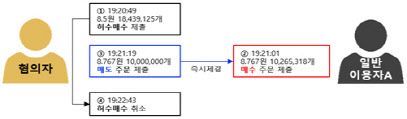 금융당국 관계자는 “가상자산 시장의 불공정 거래를 상시 모니터링하고 있으며 의심 거래를 발견하는 즉시 조사에 착수해 조치하고 있다”며 “이용자도 합리적인 이유 없이 가격·거래량이 급등하는 가상자산에 대한 추종 매수를 자제할 필요가 있다”고 했다. 또 “매매를 유인할 목적으로 이상거래 행위를 반복하는 경우 금융당국의 조사 및 조치를 받을 수 있다”고 덧붙였다.