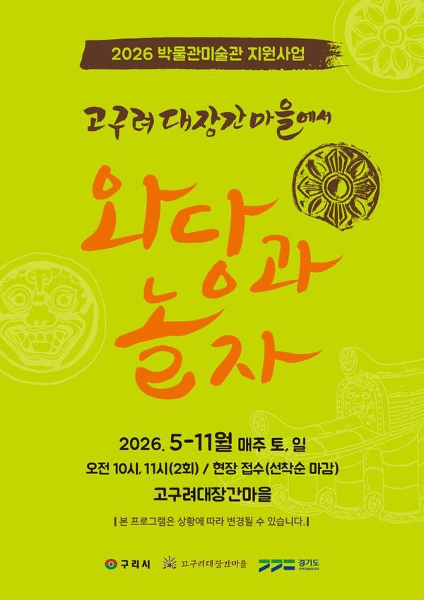 구리시는 5월 2일부터 11월 1일까지 매주 주말 고구려대장간마을에서 '고구려대장간마을에서 와당과 놀자' 체험 행사를 운영한다. 2026년 경기도 박물관·미술관 지원사업의 하나로 마련된 이번 프로그램은 가족 단위 방문객이 고구려 역사와 문화를 쉽고 재미있게 체험할 수 있도록 구성됐다.