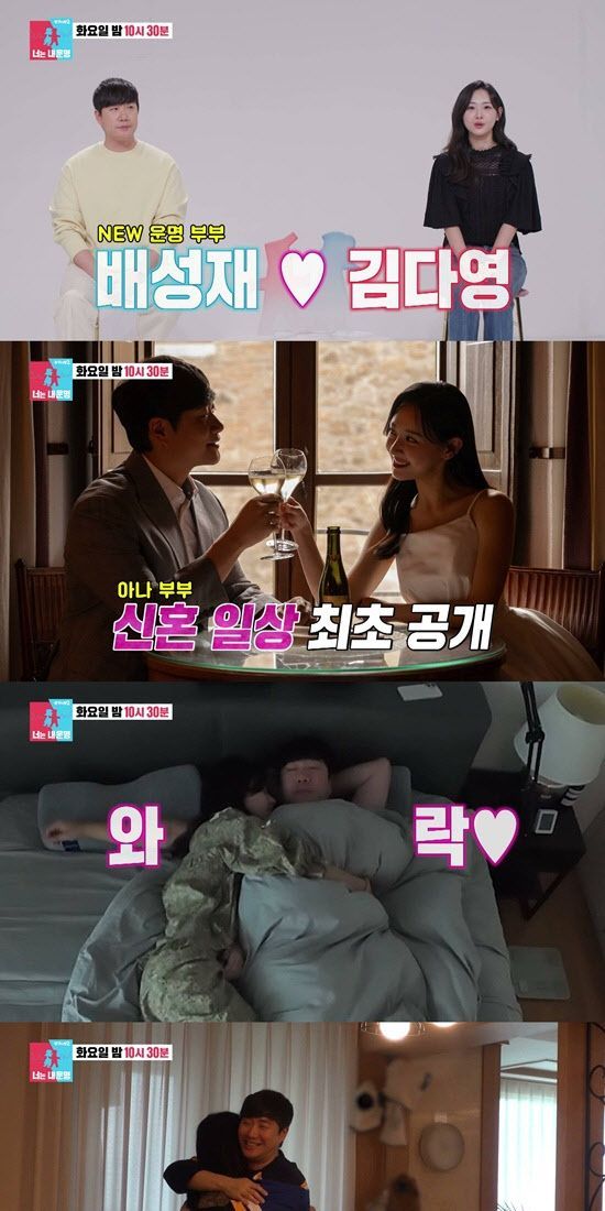 지난 28일 방송된 SBS ‘동상이몽2’ 말미에는 결혼 소식만으로도 큰 화제를 모았던 배성재, 김다영 부부의 합류가 예고됐다. 공개된 예고 영상에서 두 사람은 아침부터 서로를 껴안고 다정한 모습을 보이며 신혼부부다운 분위기를 자아냈다.