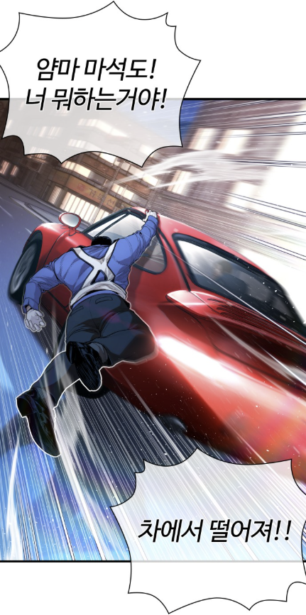 금치 못하고, 마석도에게 차에서 떨어지라 소리치지만,