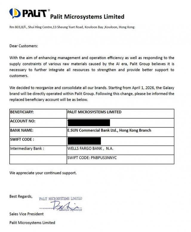 팔릿 마이크로시스템즈는 기존에도 갤럭시와 KFA2 운영에 관여해왔다. 조직 구조가 정리되면서 갤럭스 브랜드 관련 관리, 운영, 서비스 업무는 팔릿 공식 채널로 일원화된다.