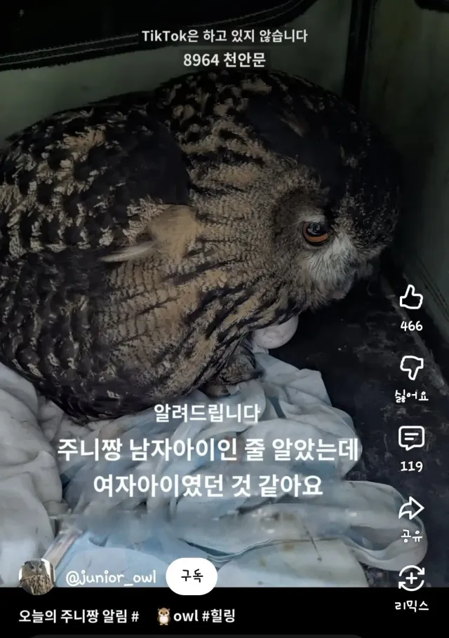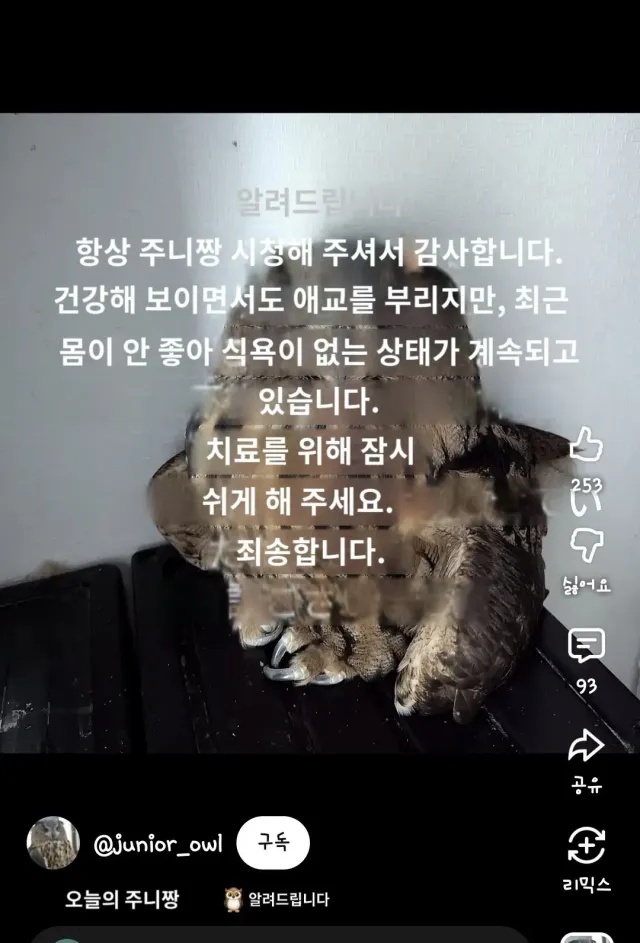 평소에 애완 수리부엉이 주니의 영상을 올리는 일본인 유튜버 부부가 있었음