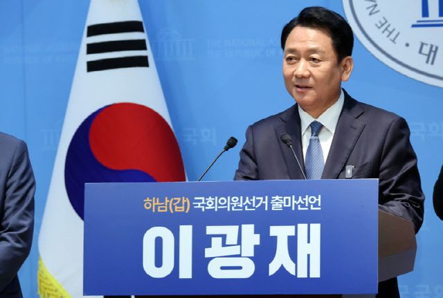 이 후보는 30일 서울 여의도 국회소통관에서 경기 하남갑 국회의원 재보궐선거 출마 선언 기자회견을 열고 “하남의 성적표가 곧 정치인 이광재의 성적표가 될 것이다. 하남의 성공에 정치 운명을 걸겠다”고 힘줘 말했다.