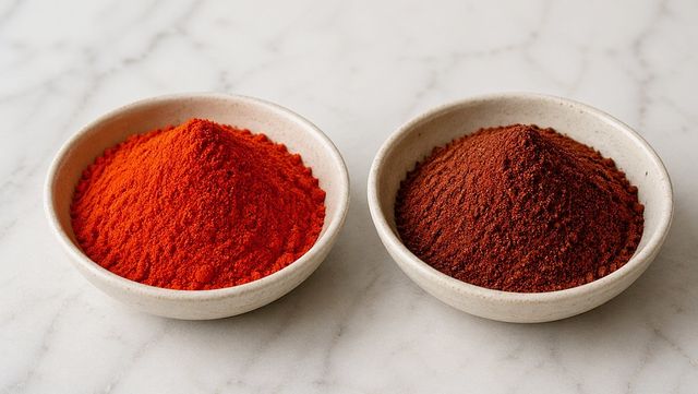 신선한 고춧가루와 오래돼 색이 어두워진 고춧가루. 기사 이해를 돕기 위해 AI로 제작한 자료 이미지.