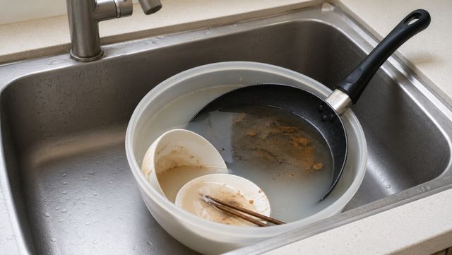 프라이팬이나 그릇에 남은 기름기를 줄이는 데도 쌀뜨물을 사용할 수 있다. 기름기가 많은 그릇을 바로 세제로 닦기 전 쌀뜨물에 잠시 담가두면 표면의 미끄러운 느낌이 줄어든다. 20~30분 정도 담근 뒤 가볍게 닦아내고, 이후 주방 세제로 마무리하면 된다. 쌀뜨물이 세제를 완전히 대신하는 것은 아니지만, 세척 전 기름기를 줄이는 보조 방법으로 쓸 수 있다.