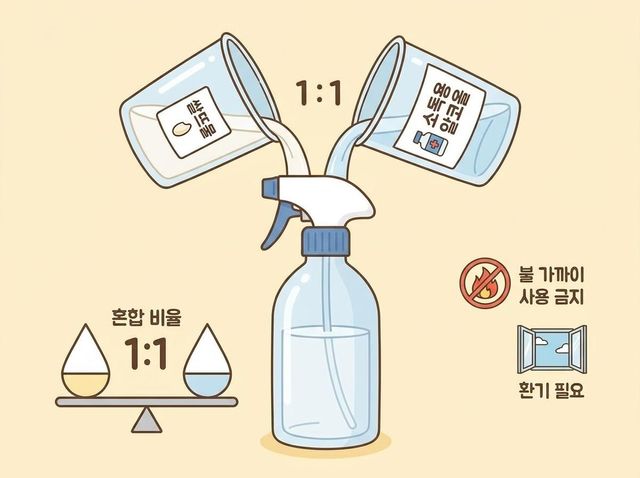혼합 비율은 쌀뜨물과 소독용 알코올을 1대1 정도로 맞추면 된다. 분무기에 같은 양을 넣고 가볍게 흔들어 사용한다. 알코올은 휘발성이 강하므로 불 가까이에서는 사용하지 않아야 한다. 가스레인지 주변을 닦을 때는 반드시 불을 끄고, 열기가 식은 뒤 사용해야 한다. 밀폐된 공간에서 오래 뿌리기보다 환기가 되는 상태에서 쓰는 것도 중요하다.
